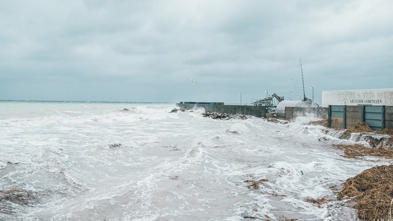 har været oversvømmet. Erhvervshavnen er meget hårdt ramt. Plankeværk blev blæst